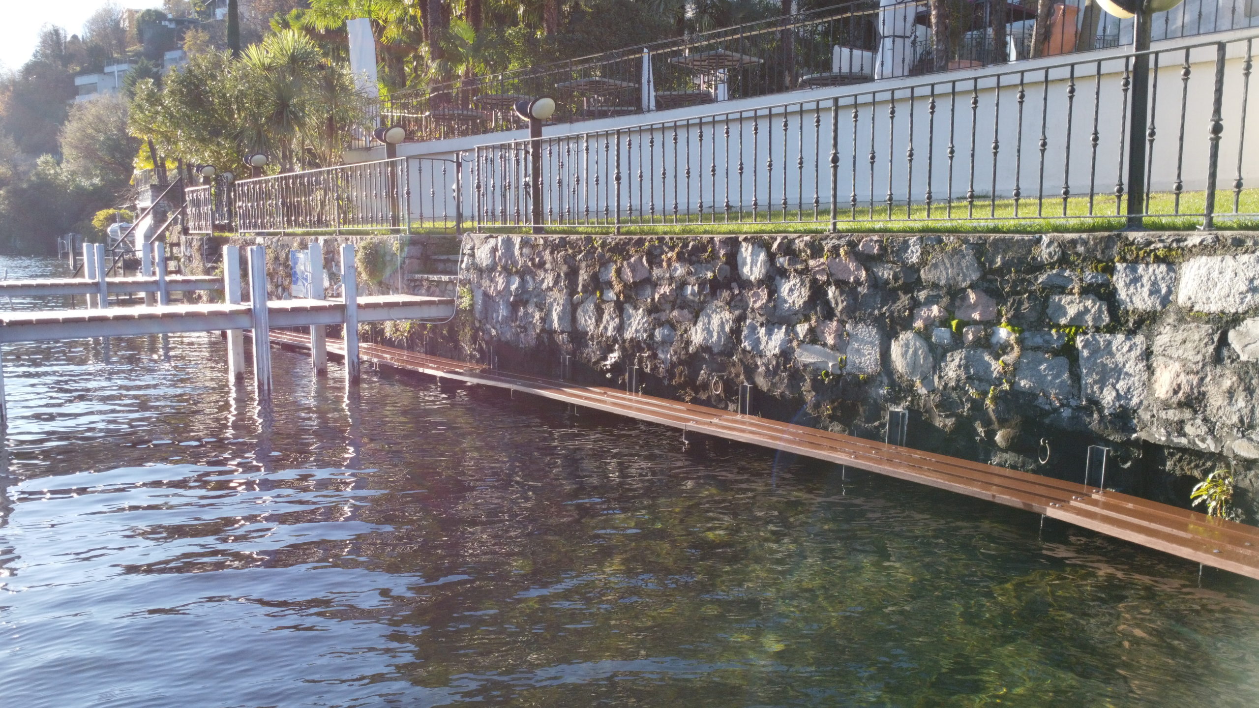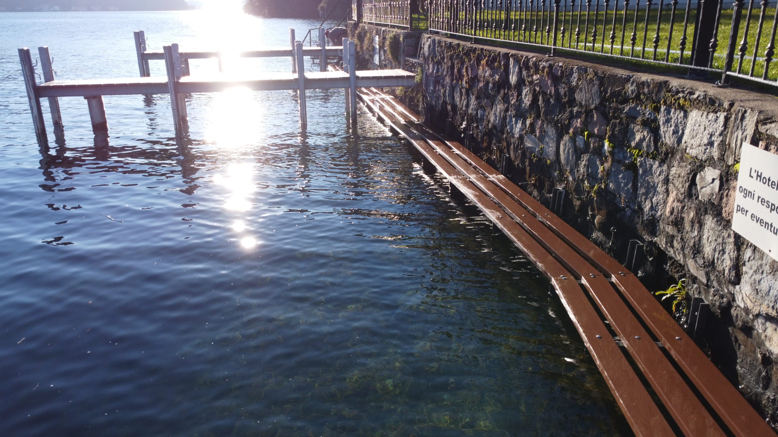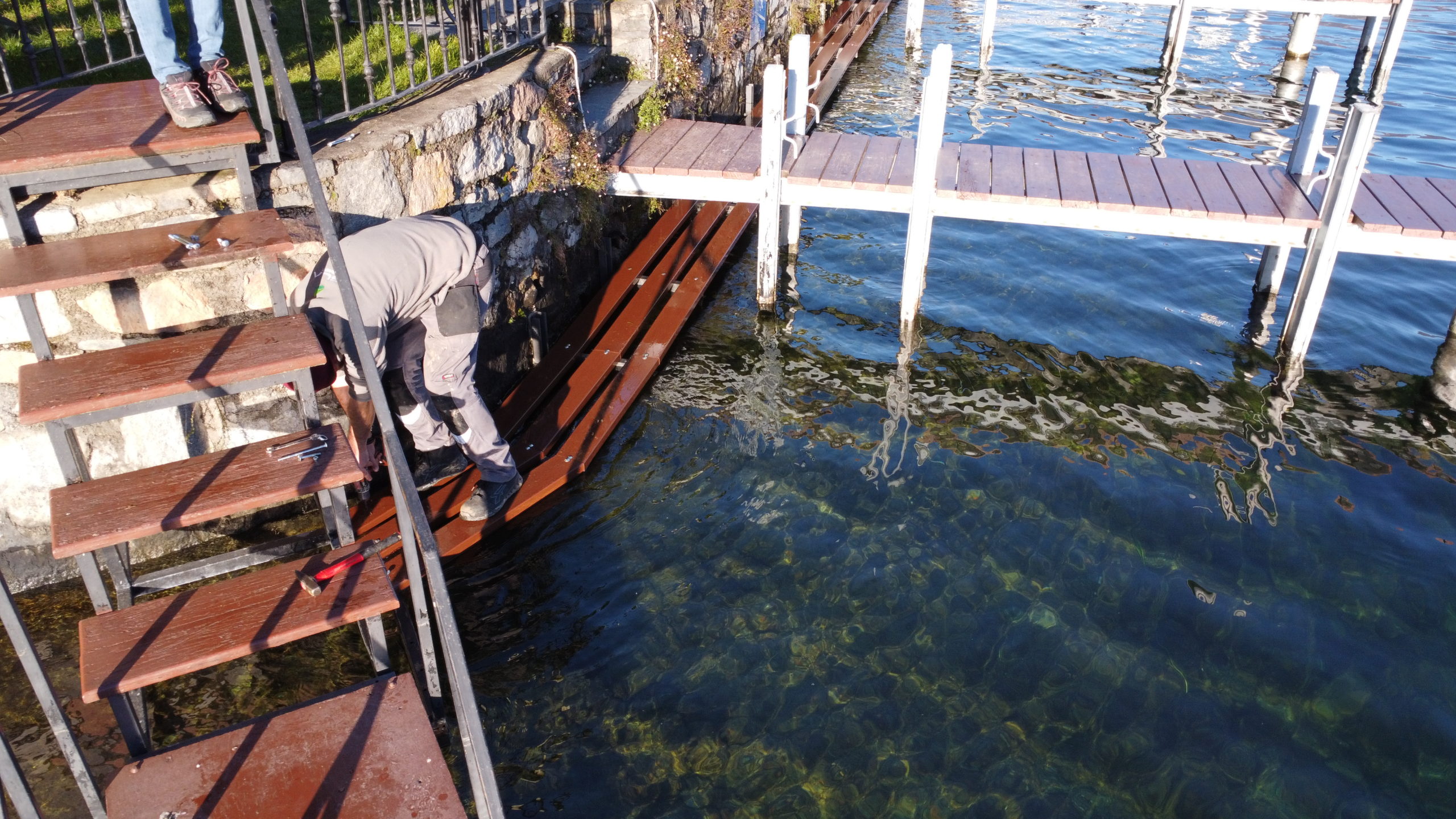 Abbiamo indossato gli stivali di gomma e siamo scesi nel lago per posare questa bellissima passerella.
