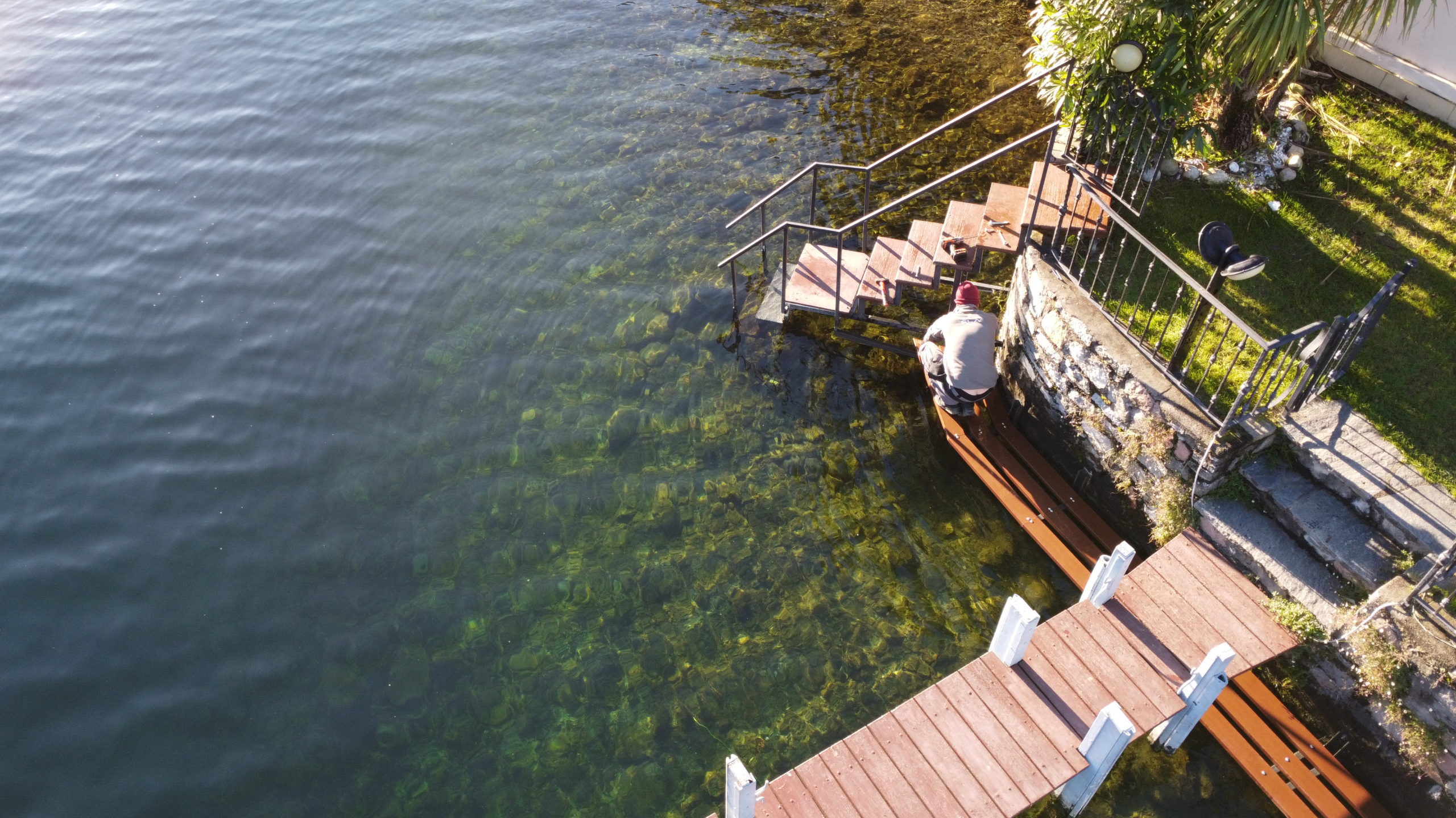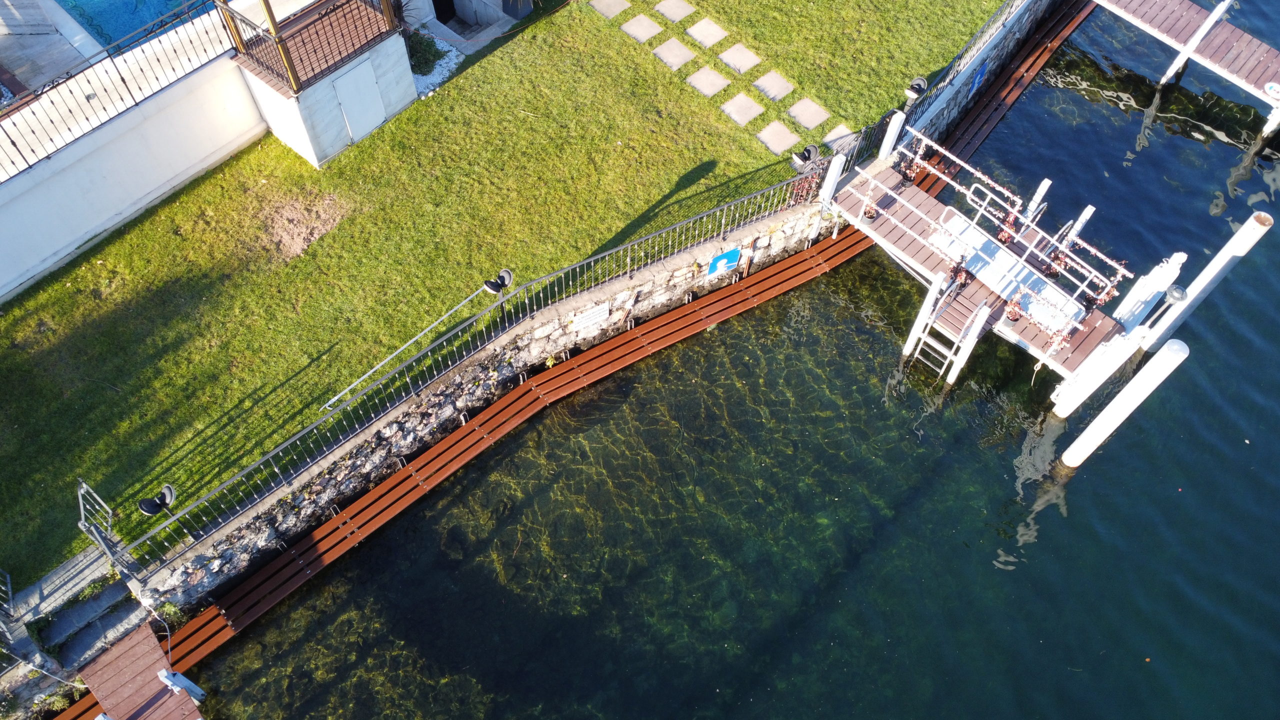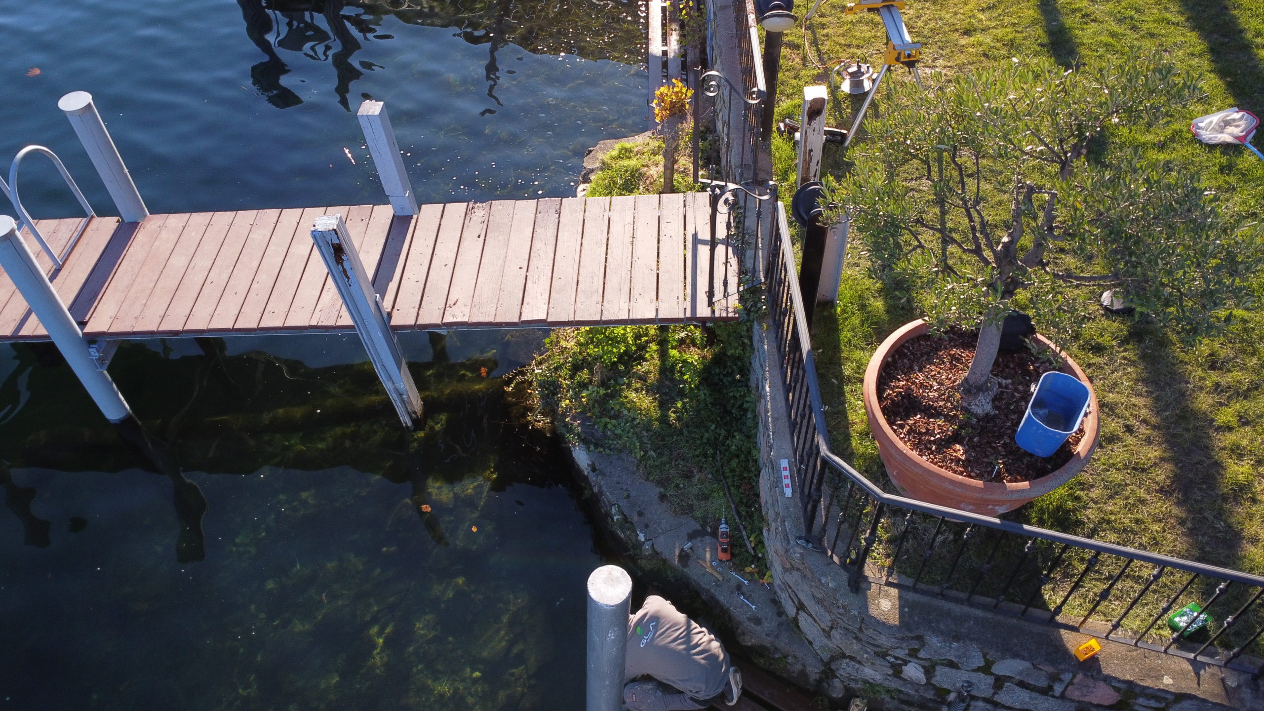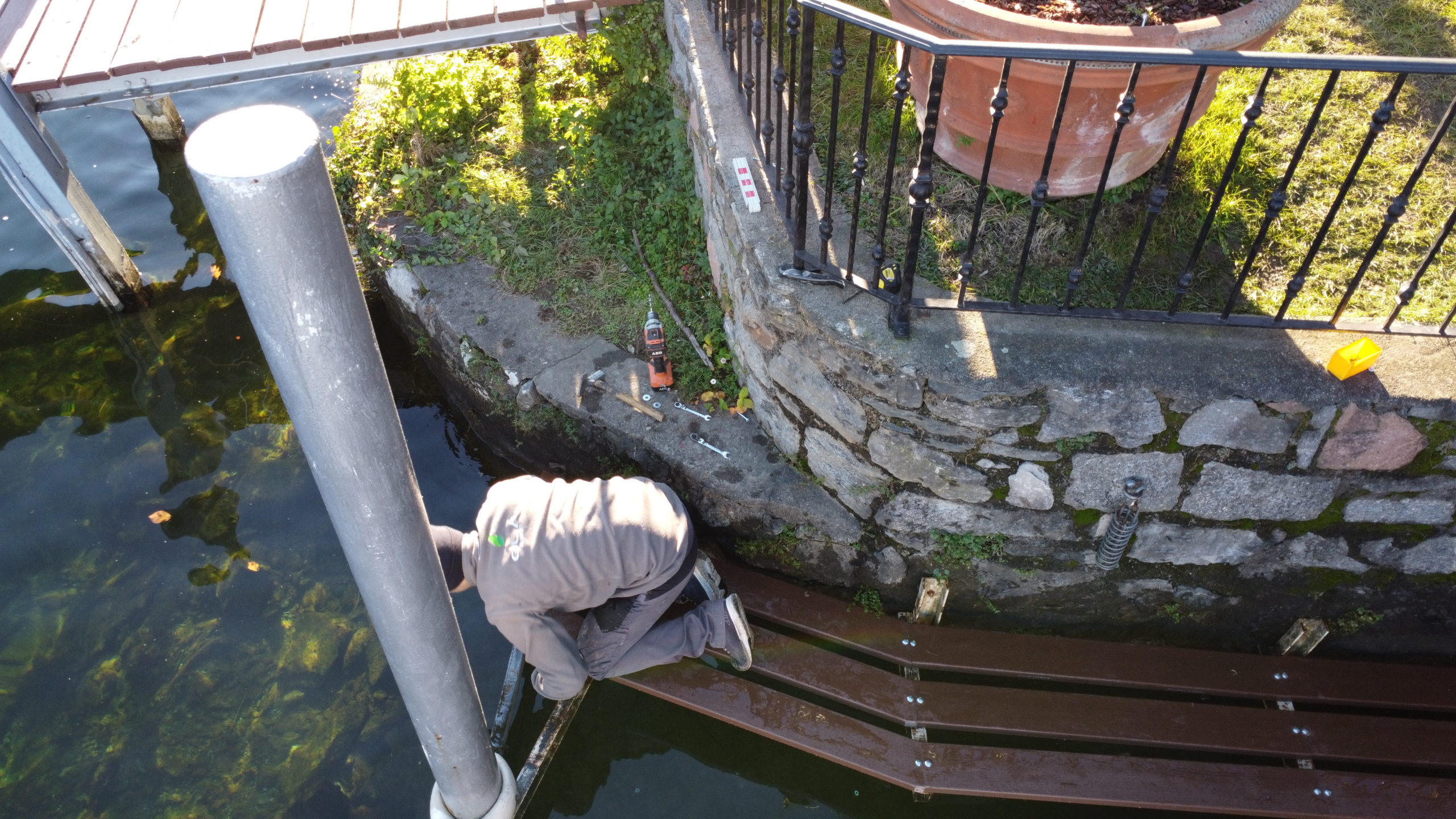 Abbiamo indossato gli stivali di gomma e siamo scesi nel lago per posare questa bellissima passerella.